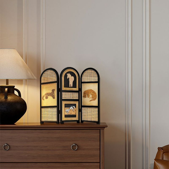 Small Decorative Painting: Includes a small painting featuring a golden leopard, adding an eye-catching focal point.