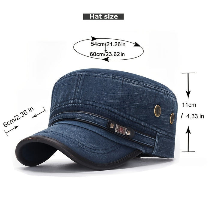 Retro Slub Cotton Flat Cap with Leather Trim - XZI8