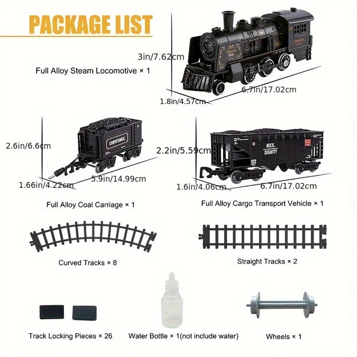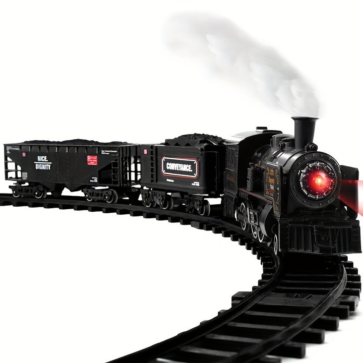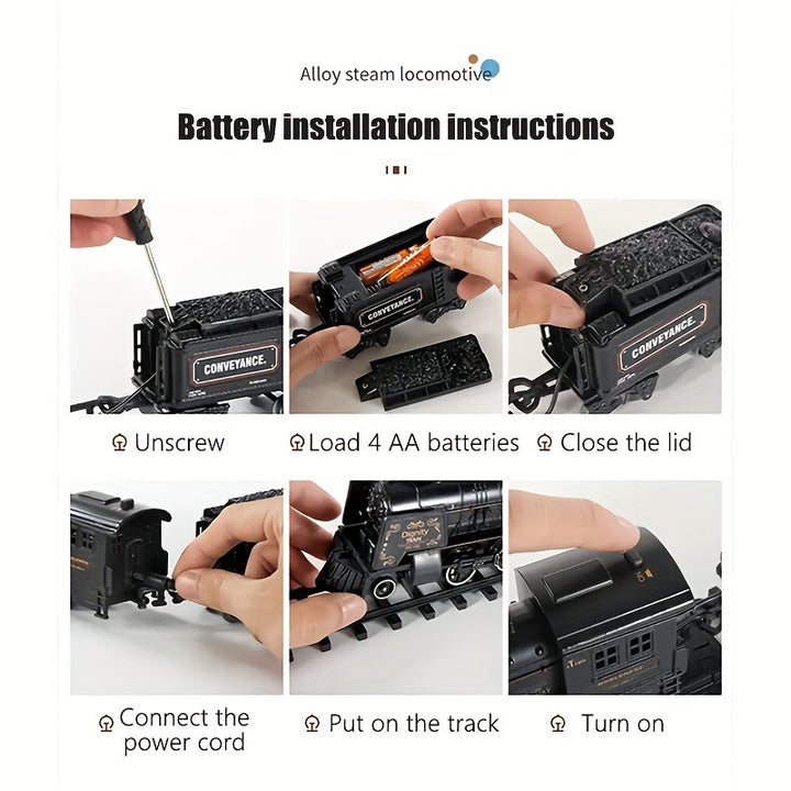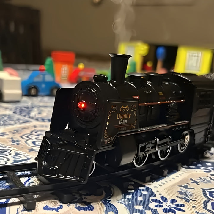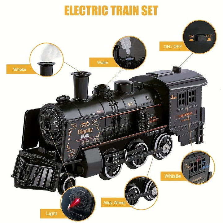 Retro Steam Train Set - Electric Metal Train with Lighting and Sound Effects - TJR2M6L