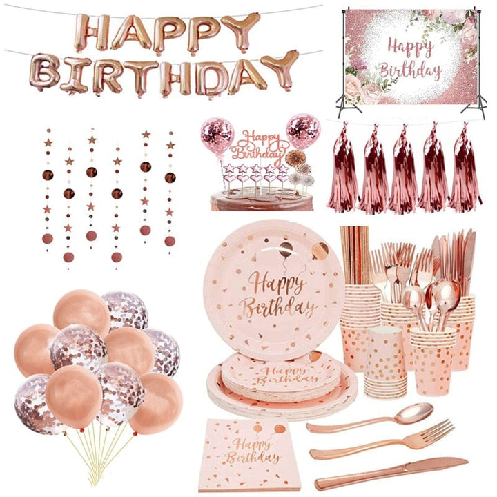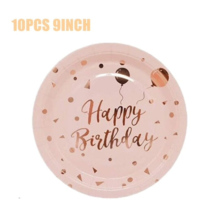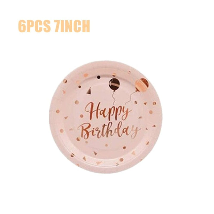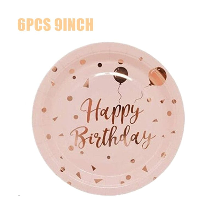 Rose Gold Birthday Party Decorations Disposable Tableware Paper Plates Cup Girls Rose Gold Party Supplies