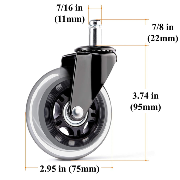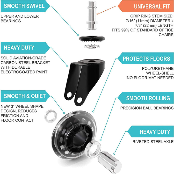 Rubber Office Chair Casters Set of 5 - Universal Fit - TJRTU9R