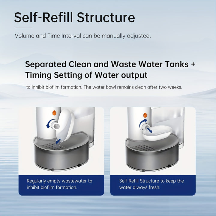 Enhance your pet's hydration experience with the innovative Self-Rechargeable Cat Water Fountain by PETGRAVITY. Designed with convenience and safety in mind, this fountain offers several key features tailored for your feline friend's needs.