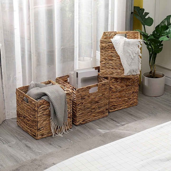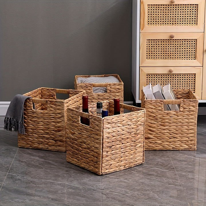 - 4-Pack Handwoven Hyacinth Storage Baskets