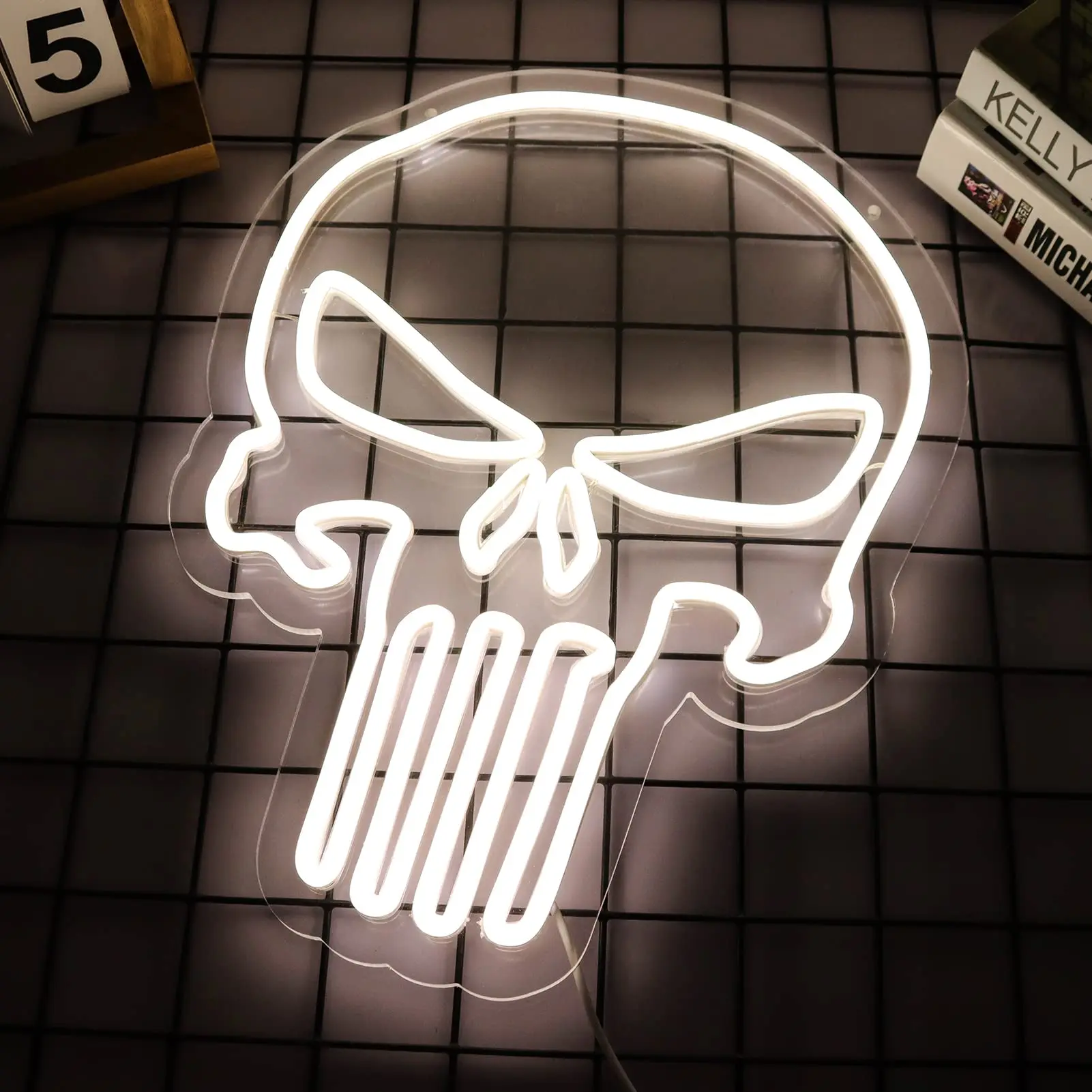 - 🎇 Spark Your Joie De Vivre! 🎇: Convey an attitude to life and create a cheerful party atmosphere with this neon signs Punisher Skull ! Perfect for decorating your living room, bedroom or your workstation with your office.