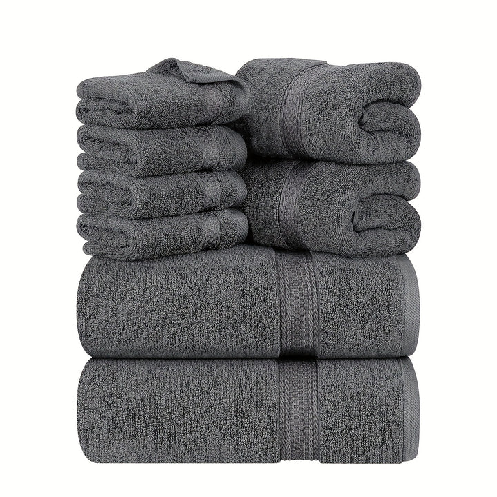 - 8-piece towel set: includes 2 bath towels, 2 hand towels, and 4 washcloths.