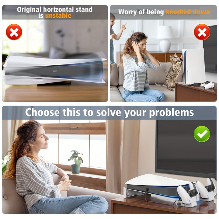 Space-saving Design: With this horizontal bracket, you can securely place your PS5 console in a horizontal position, saving valuable space on your gaming setup. It provides a stable and organized storage solution for your console and controllers.