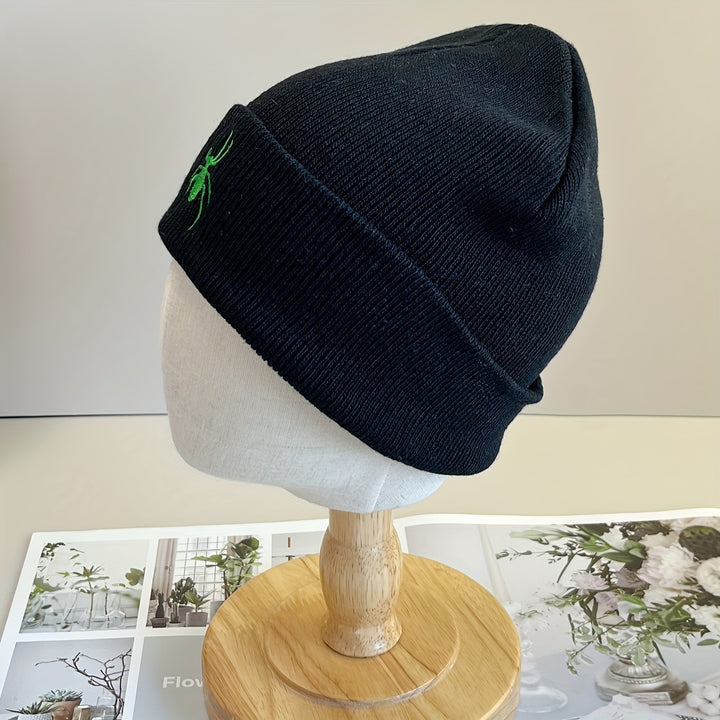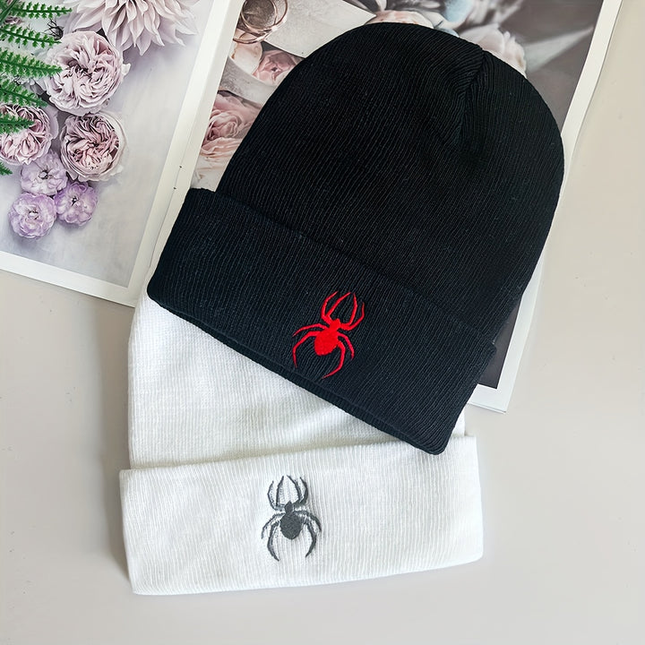 - Design: Spider embroidery graphic add a unique touch to the beanie set.