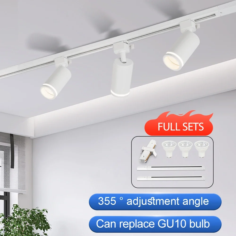 3pcs White/Black Body 1set: 3 lights+2 0.5m rails+1 connection