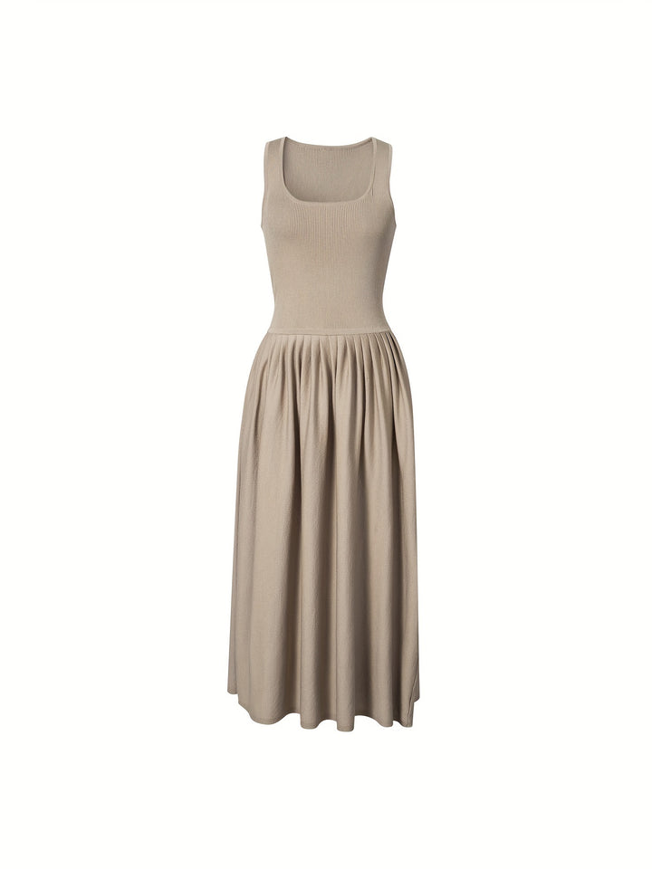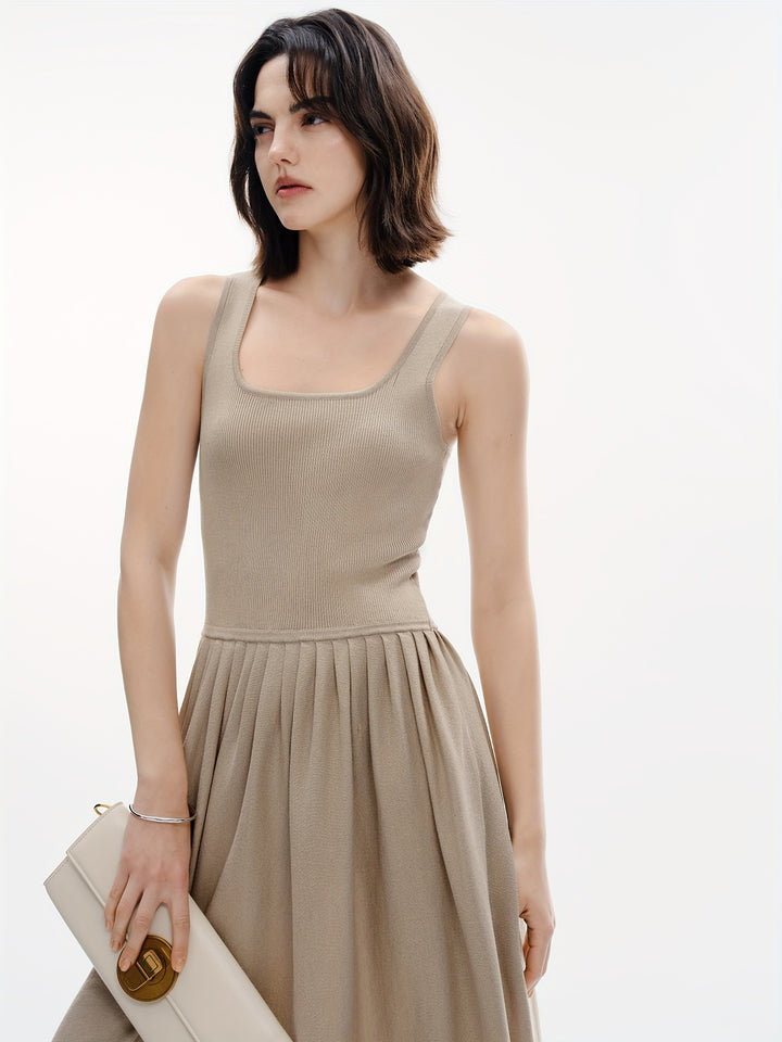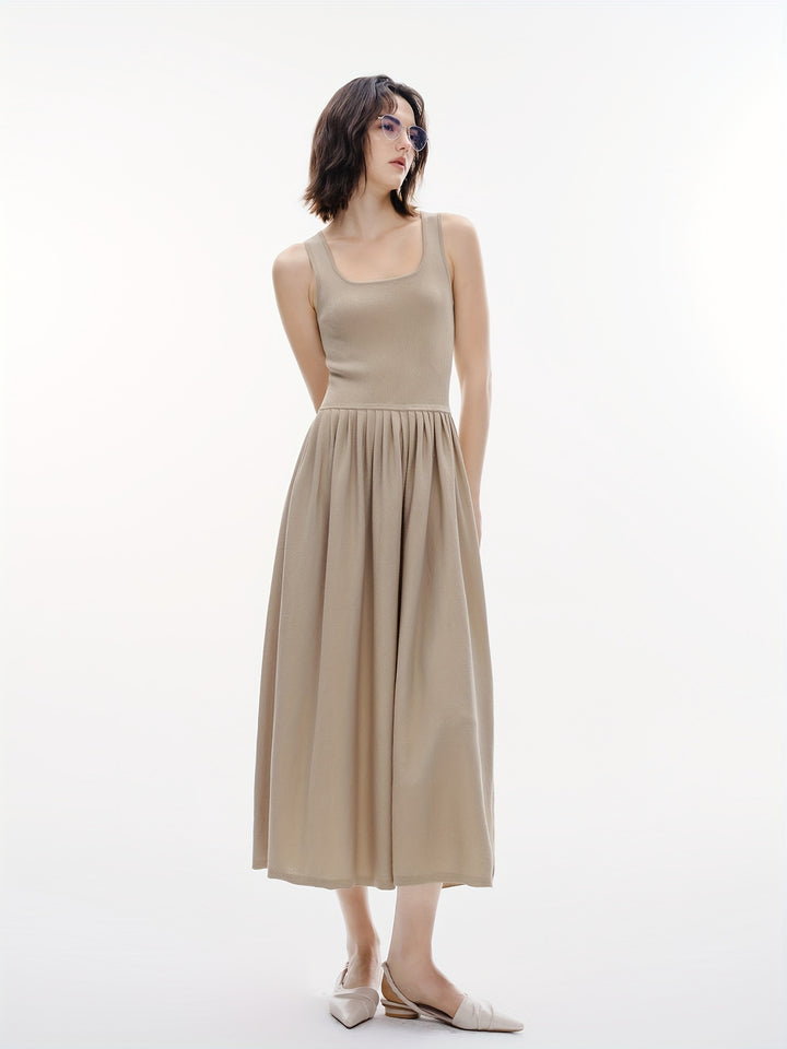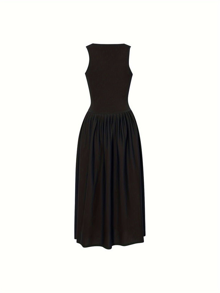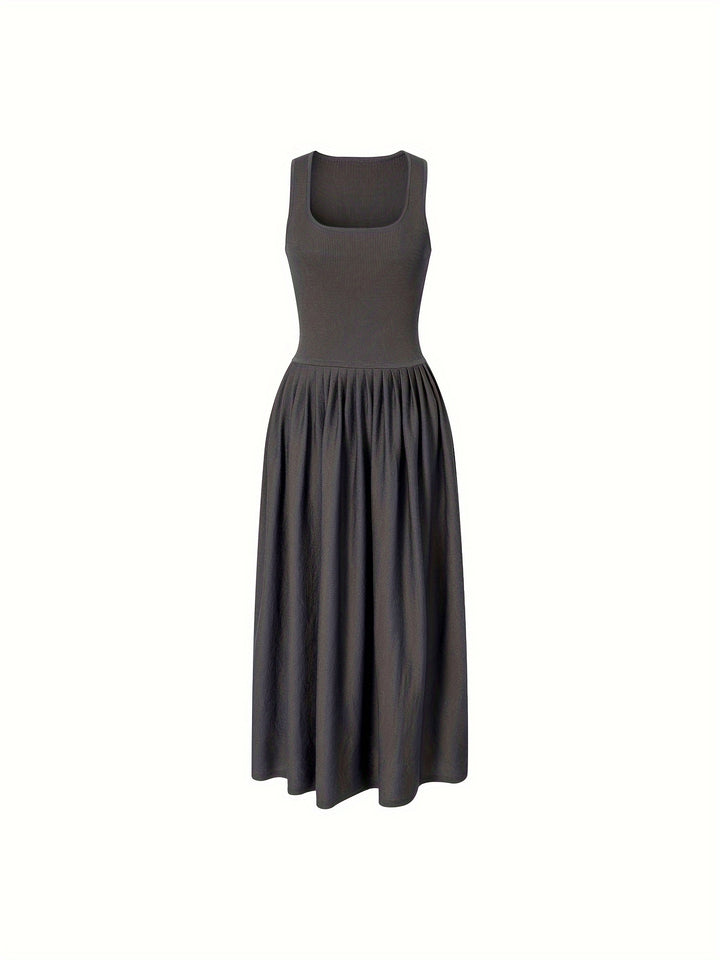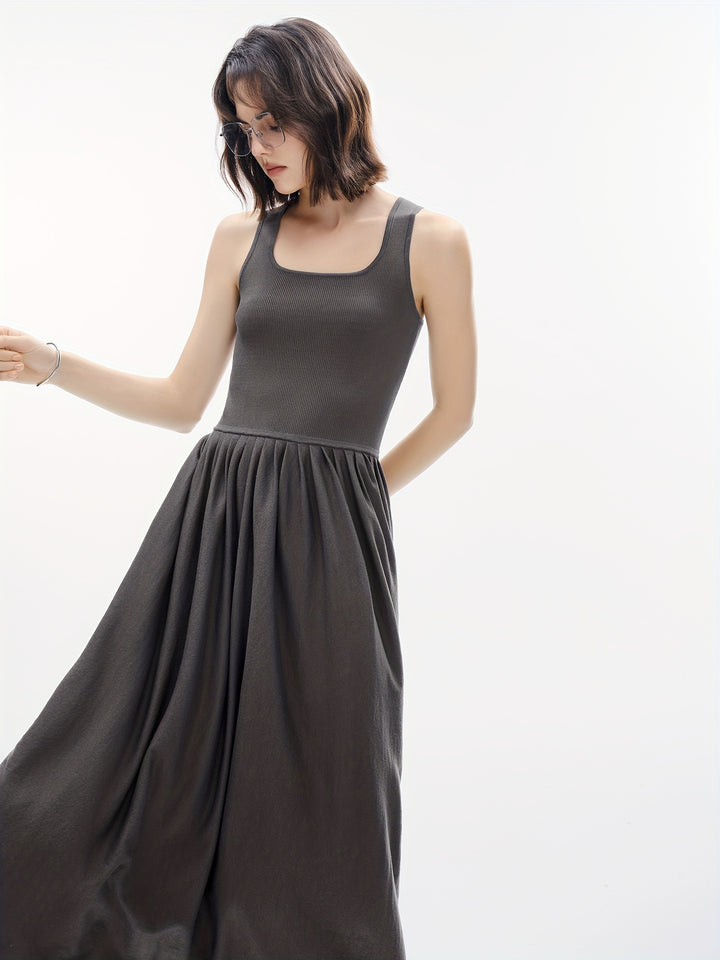 Square Neck Ruffle Hem Midi Dress - HSJH