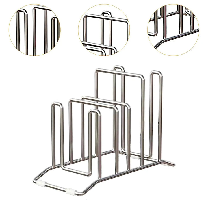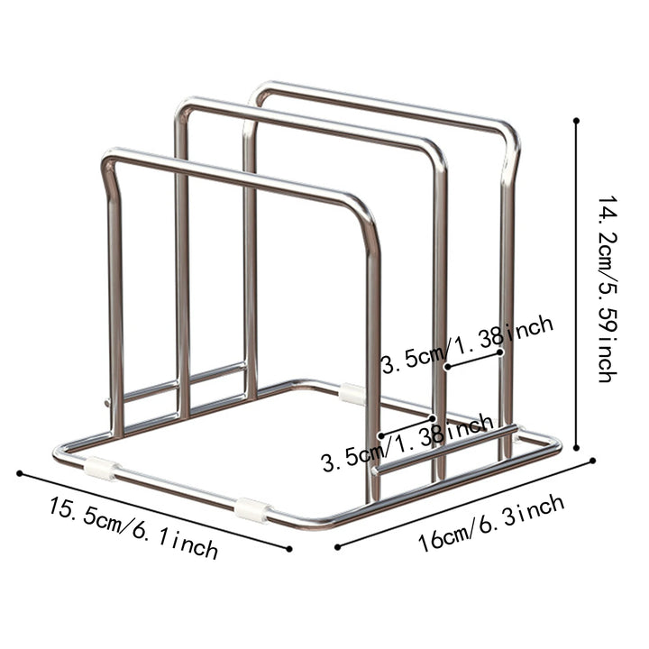 【Material】: Cutting board rack is made of stainless steel material, sturdy, rustproof and not easy to be damaged, ensuring long time use