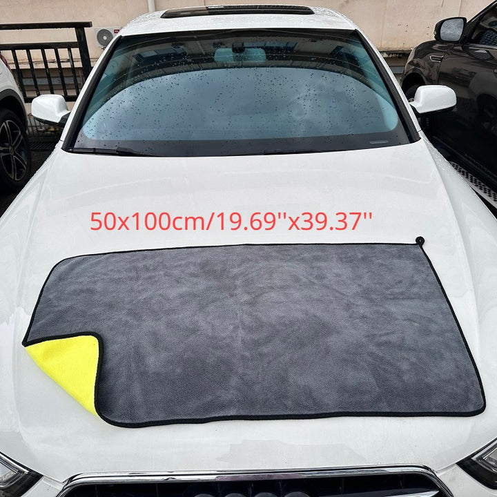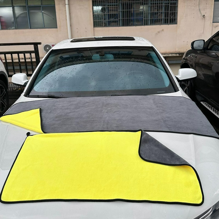 This Microfiber Towel is the perfect choice for drying your vehicle after a wash. The thickened material is super absorbent, allowing you to dry your car or truck quickly and efficiently. The extra-large size means you can cover more surface area with each swipe, saving you time and effort. The ultra-fine fibers are gentle on your vehicle's finish, making it safe for use on all types of vehicles. Perfect for car care and detailing, this towel is a must-have for any car enthusiast.