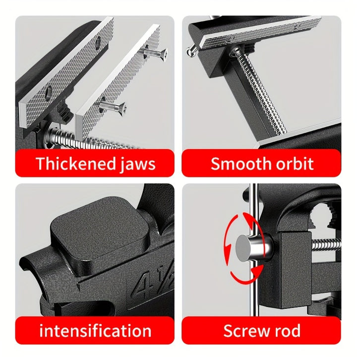 - Multi-Angle Flat Mouth: The vise features a multi-angle flat mouth design, providing you with the ability to hold objects at different angles. This ensures convenience and ease of use during intricate projects.