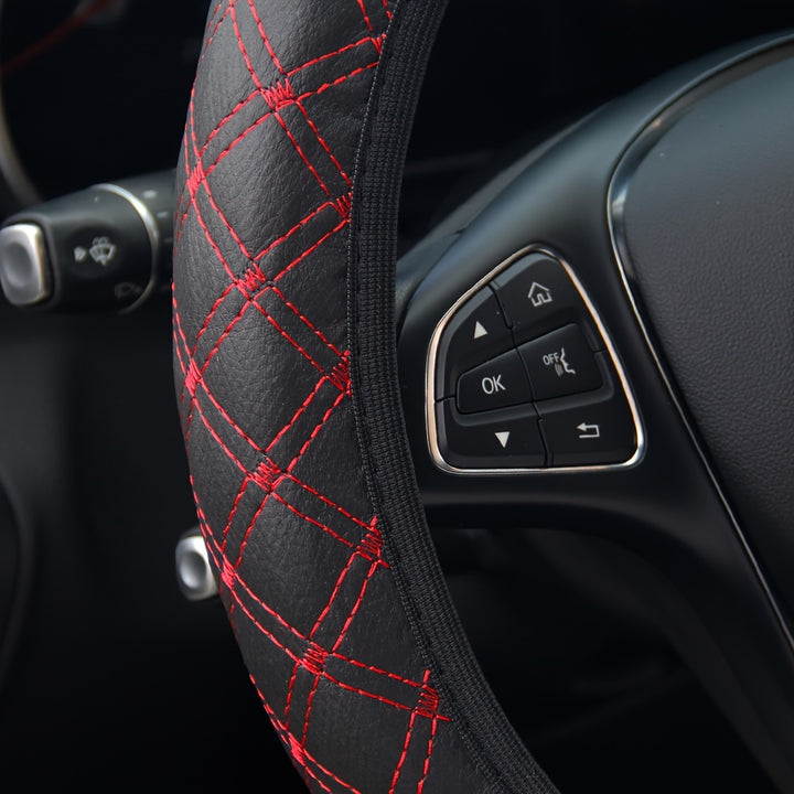 Textile Silk Red Wine PU Leather Steering Wheel Cover - NZM9