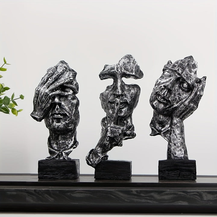 - Set of 3pcs Thinker Statue representing "Can't Hear, Can't See, Can't Talk" concept