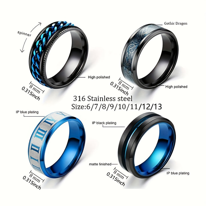 - Set of 4 titanium stainless steel swivel rings for both men and women