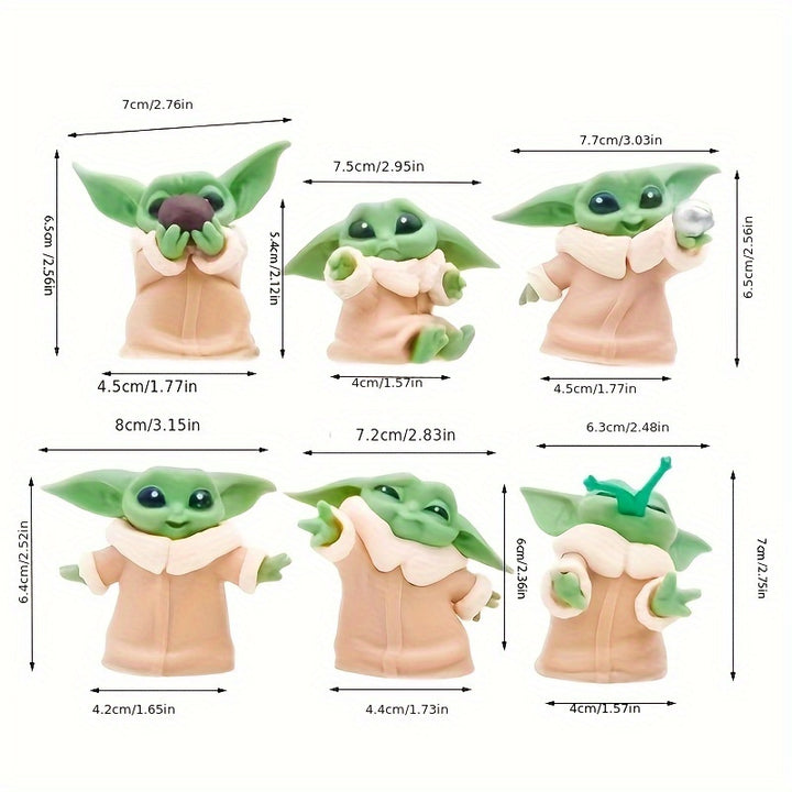 Set of 6 Unique Figures: This set includes six distinct Grogu figures, each with unique poses and expressions. These variations add a delightful diversity that is perfect for both play and display.