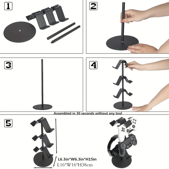 Durable metal construction: Made of high-quality metal, this game controller stand is built to last. It provides a sturdy and stable base for your controllers, ensuring they stay in place and remain safe when not in use.