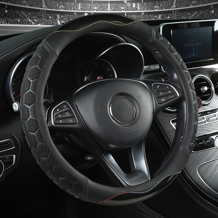 Add a touch of style and functionality to your car with this 15in/38cm PU Leather Car Steering Wheel Cover. Made from high-quality PU leather, this wheel cover is designed to provide a non-slip grip while also adding a layer of protection to your steering wheel. The breathable microfiber material ensures comfort during long drives, and the universal fit makes it suitable for most car models. With an inner circle for easy installation, this wheel cover is both practical and stylish.