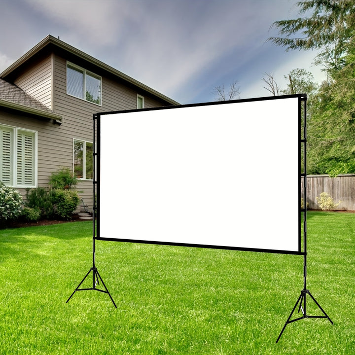 Upgraded Design: The projector screen with stand features an upgraded design that allows for easy set-up and maximum convenience. It is designed to be both indoor and outdoor compatible, making it perfect for backyard movie nights or any other occasion.