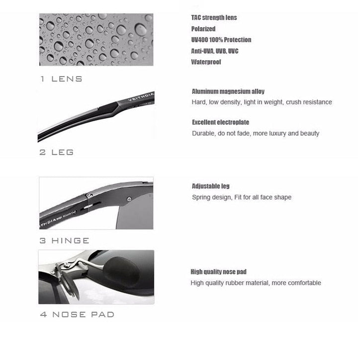 VEITHDIA Brand Designer Men's Sunglasses Aluminum Magnesium Polarized UV400 Sun Glasses Cycling Sports Male Outdoor Eyewear 6592