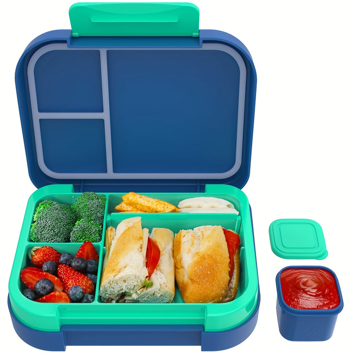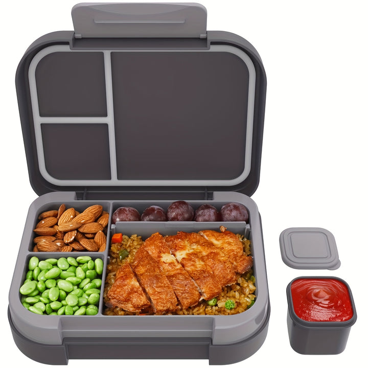 Accompanying the main compartments are dedicated dipping sauce containers, perfect for transporting dressings and sauces without the risk of spills or mix-ups.