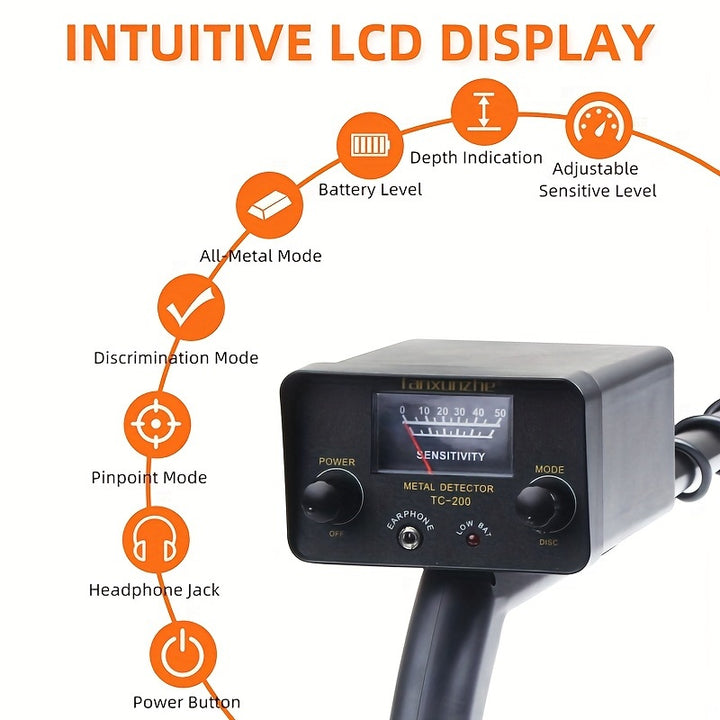 LED display: The metal detector features an LED display that provides clear and easy-to-read information about the detected objects.