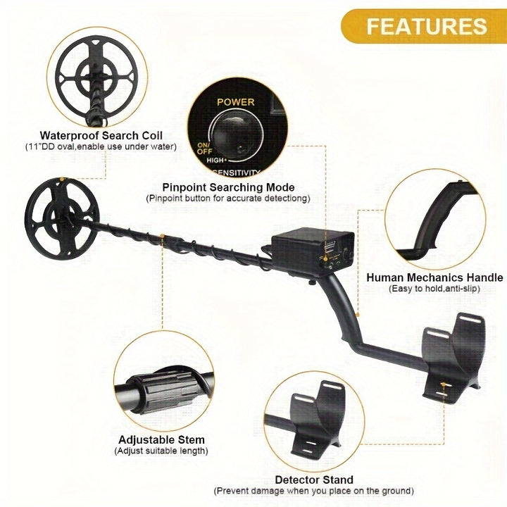 Waterproof design: This metal detector is fully waterproof, allowing you to search for treasures in wet environments such as beaches or rivers.