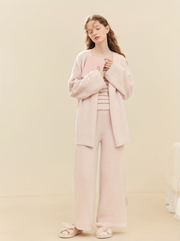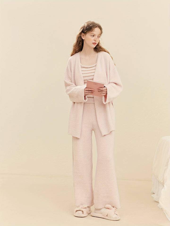 - Solid Fuzzy Pajama Set: Made of high-quality 100% polyester material, this pajama set ensures a cozy and comfortable feel during sleep or lounging.